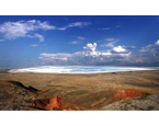 Озеро Баскунчак находится недалеко от горы Большое Богдо.Оно не имеет аналогов в мире по своему химически чистому составу добываемой соли, необычайной глубине и мощности залегающих соляных пластов. Площадь озера составляет примерно 115 км². Озеро имеет неправильную форму – очевидно, поэтому оно когда-то и получило свое название: "Баскунчак" в переводе с казахского означает "собачья голова". Его называют "Священным озером", а также "Всесоюзной солонкой", ведь баскунчакская соль составляет четыре пятых объема всей российской соли. Баскунчакская соль считается одной из лучших в мире. Питание озера происходит главным образом за счет многочисленных источников, которые впадают в Баскунчак по его северо-западному берегу. В течение года в озеро поступает более 930 тысяч тонн солей. И в самой котловине за прошедшие времена накопилось огромное количество соли. Внешний вид озера изменчив, кажется, что оно покрыто сверкающим льдом. В некоторых местах по поверхности можно ходить – настолько она твердая. И утонуть здесь невозможно – вода в озере так насыщена солью, что выталкивает тело на поверхность. Впервые озеро Баскунчак как место, где "ломают соль, чистую как лед" упоминается в 1627 г. в первом географическом описании России – "Книге Большого чертежа".